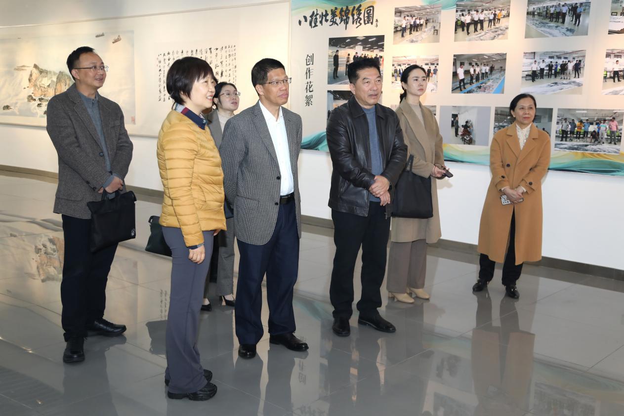 宁旭初一行还参观了广西民族音乐博物馆和我校中国画百米长卷《八桂壮美锦绣图》,现场感受了广西以及东南亚民族音乐的魅力,对我校美术学科的内涵式建设与高质量发展给予高度评价。