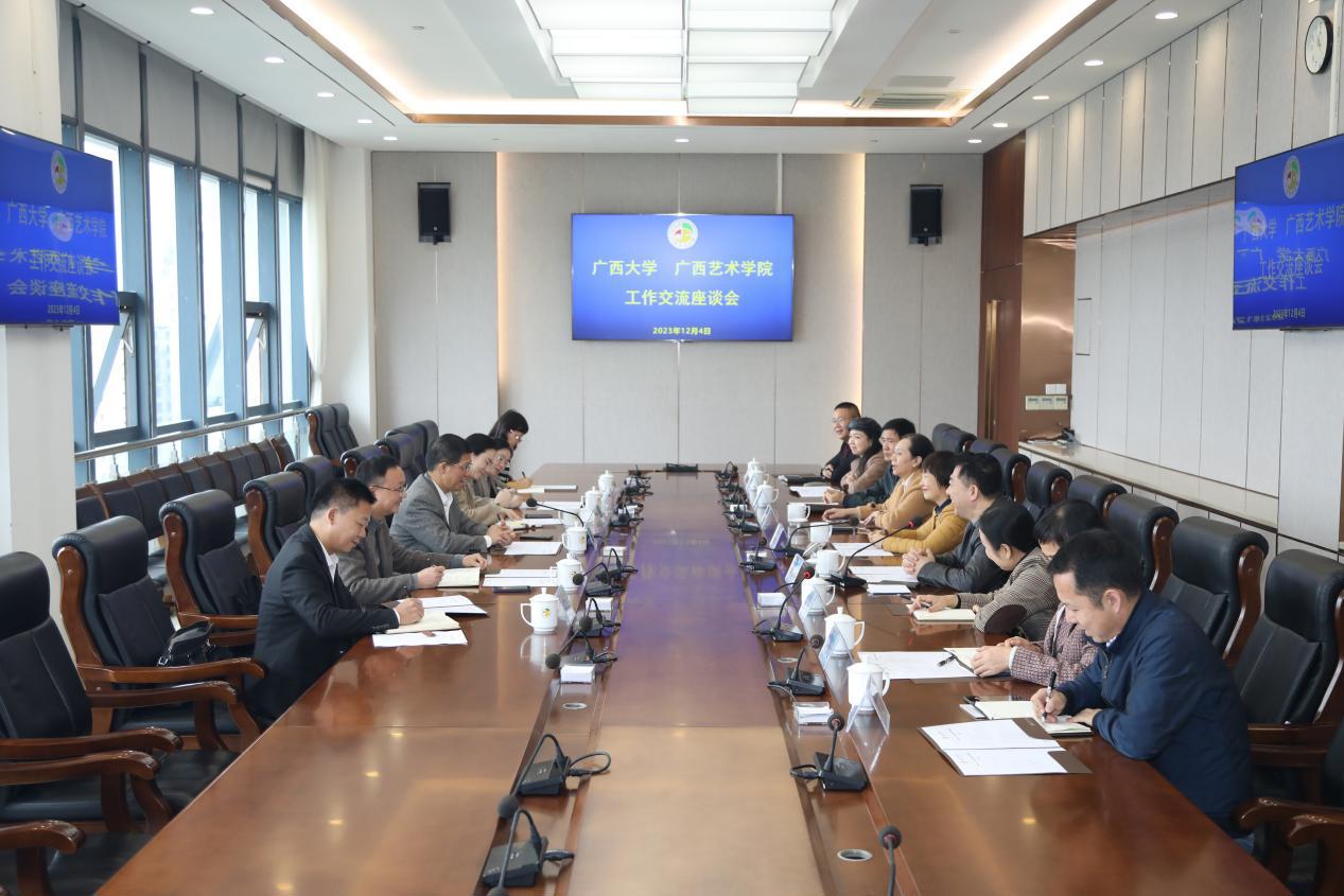 12月4日上午,广西大学党委常委、副校长宁旭初一行6人到我校交流座谈,学校领导查丹明、韦俊平、韦春灵会见了宁旭初一行。
