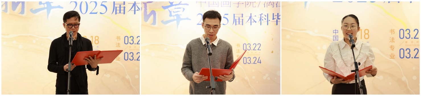 开幕式上,毕业指导教师林洪钱和本科毕业生郭柏伦、康柏圆分别作为师生代表发言。期望毕业生们今后继续保持对艺术创作的热爱,发挥本科所学,为弘扬中华优秀传统文化贡献青春力量。