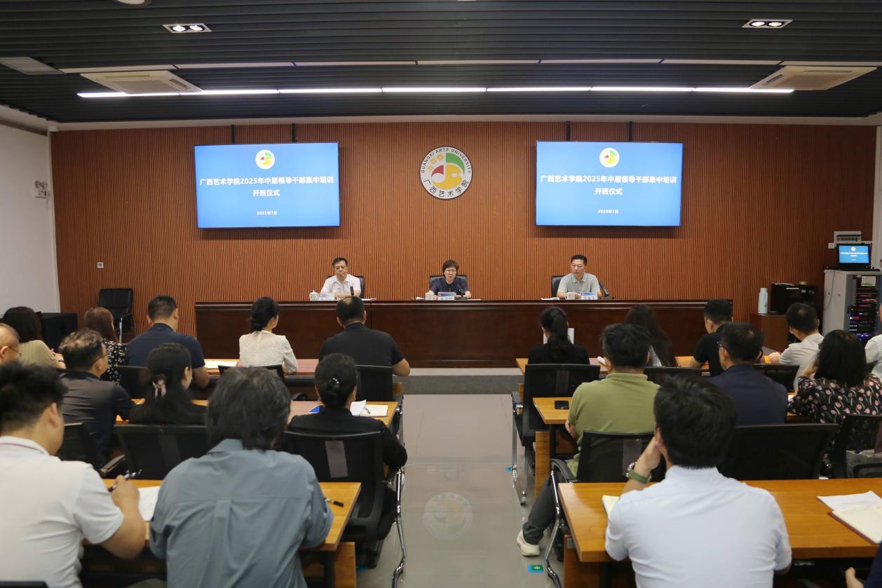 为扎实推进深入贯彻中央八项规定精神学习教育,切实提升中层领导干部综合素养,7月4日上午,我校2025年中层领导干部集中培训在漓江画派艺术中心101报告厅正式开班,学校领导查丹明、韦俊平、毛茂林出席开班仪式,全校中层领导干部参加培训,开班仪式由学校党委副书记、校长韦俊平主持。