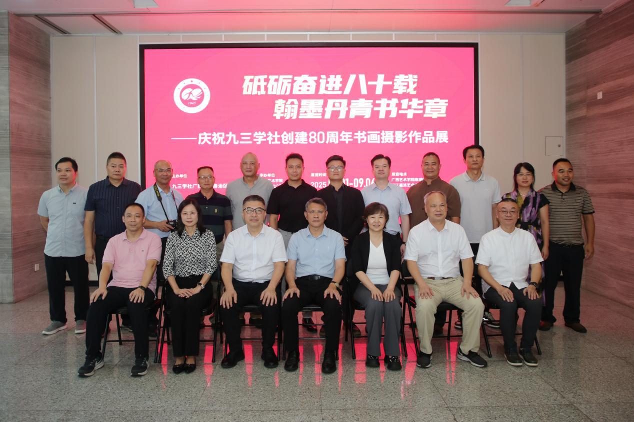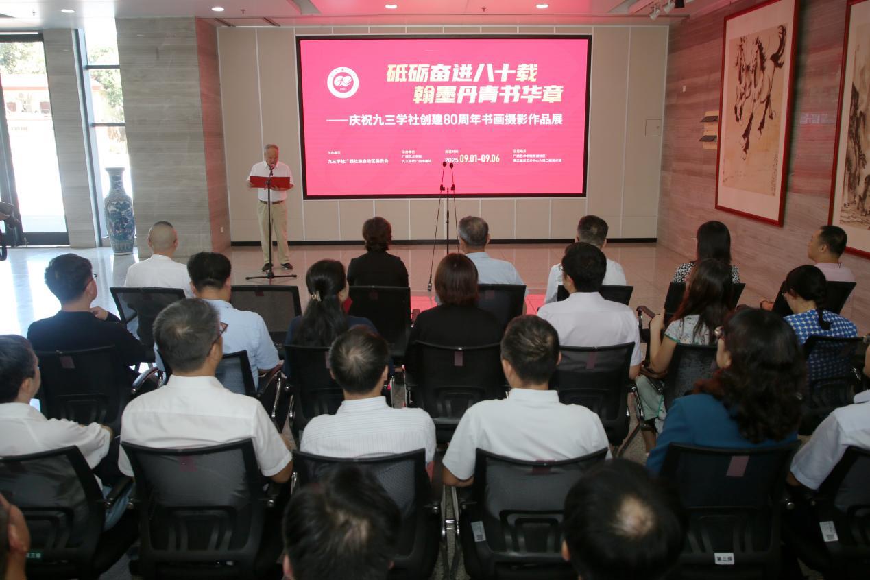9月1日下午,“砥砺奋进八十载 翰墨丹青书华章——庆祝九三学社创建80周年书画摄影作品展”在我校漓江画派艺术中心举行开幕式。自治区政协副主席、九三学社广西区委主委彭健铭,学校领导查丹明、韦俊平、石向东出席开幕式。
