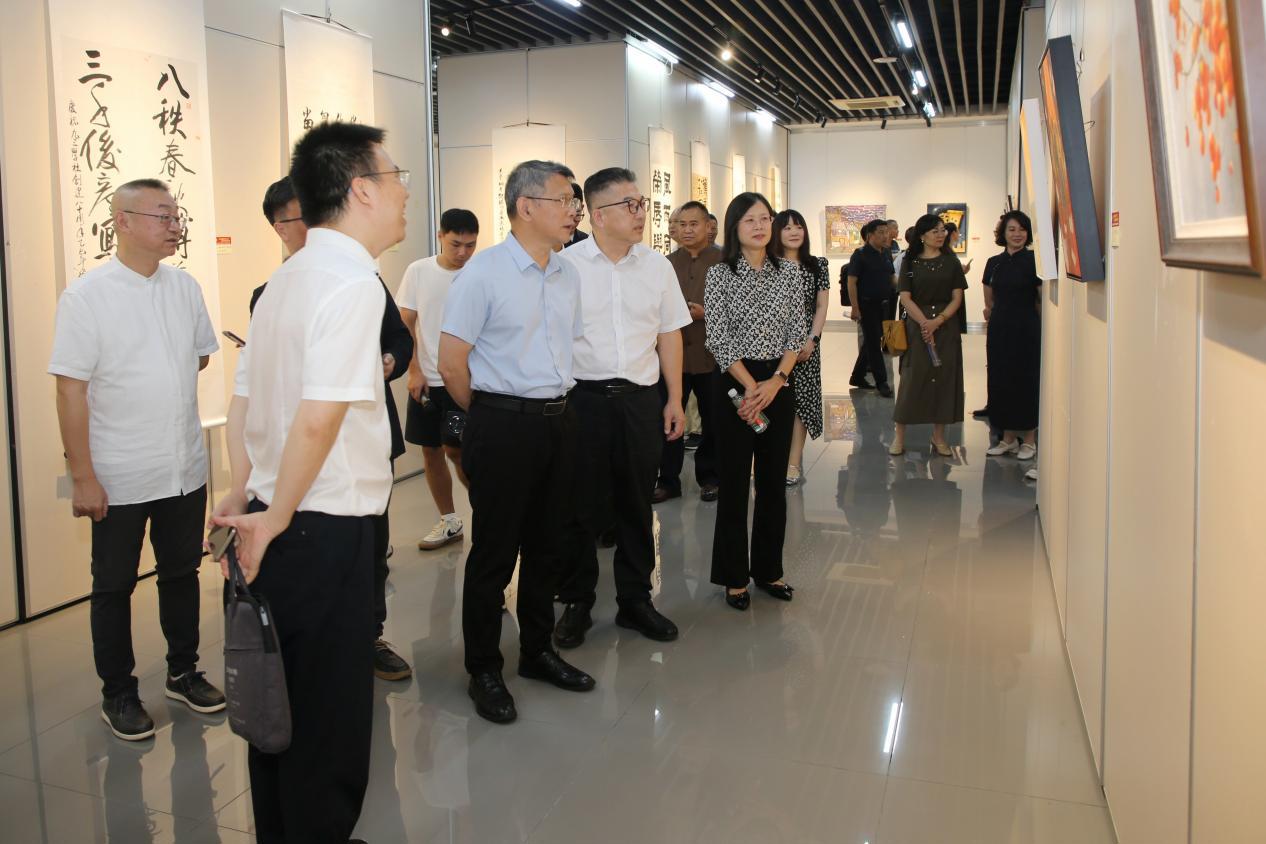 学校党委书记查丹明在致辞中表示,作为承办方,我校始终致力于推动文化与科技融合发展,搭建艺术交流与思想碰撞的优质平台。希望通过此次展览,传承九三学社“爱国、民主、科学”的优良传统,促进各界人士在艺术创作中汲取奋进力量,共同探索新时代文化发展新路径;同时期待广大师生能从优秀作品中感受时代变迁、激发创新热情,在各自领域续写新的篇章。